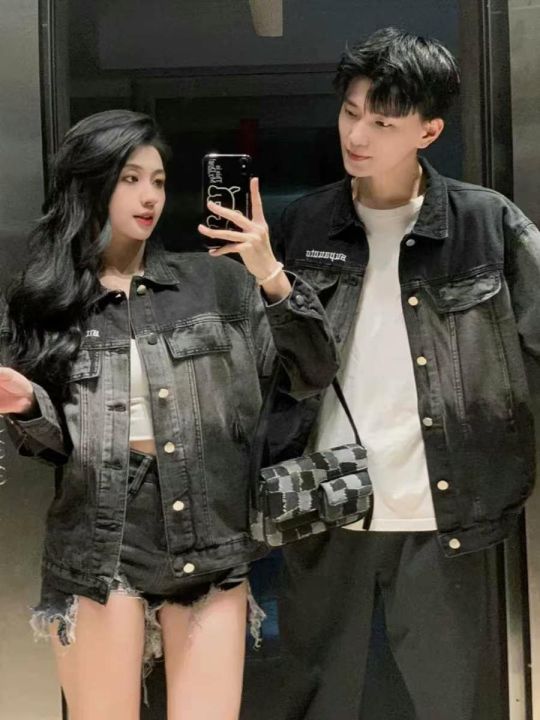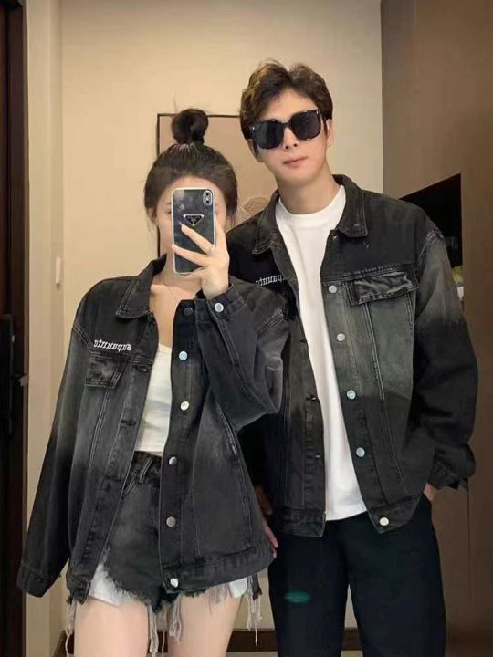 春秋新款男女同款洗水棉工装渐变色牛仔外套,独立包装...