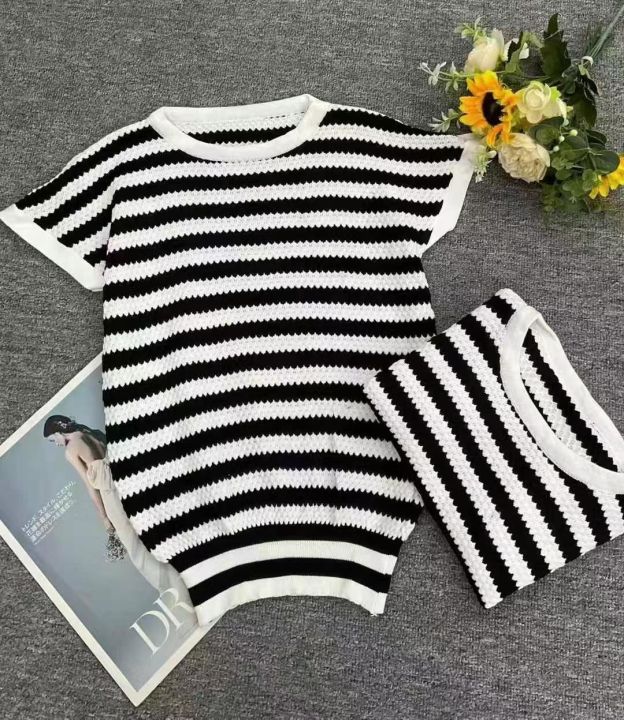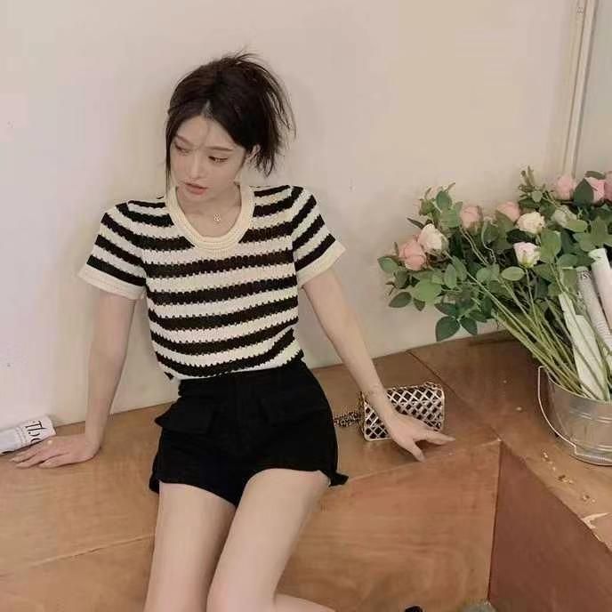 夏季新款撞色镂空条纹针织小衫,独立包装,均码面料柔...