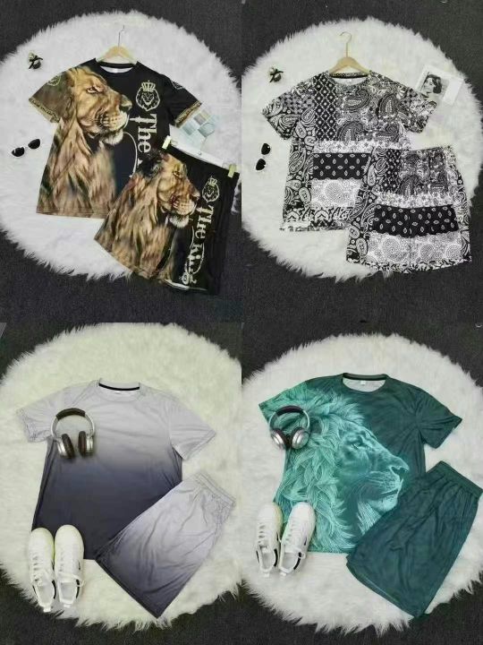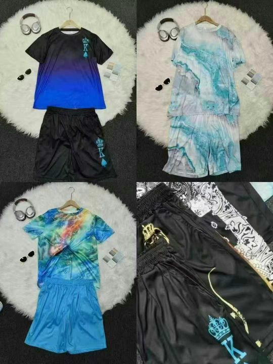 跨境2025爆款男装T恤短袖套装休闲时尚男士运动装(小整杂),独立包装,3680件,码数M-3XL,全清8.8分货➕1