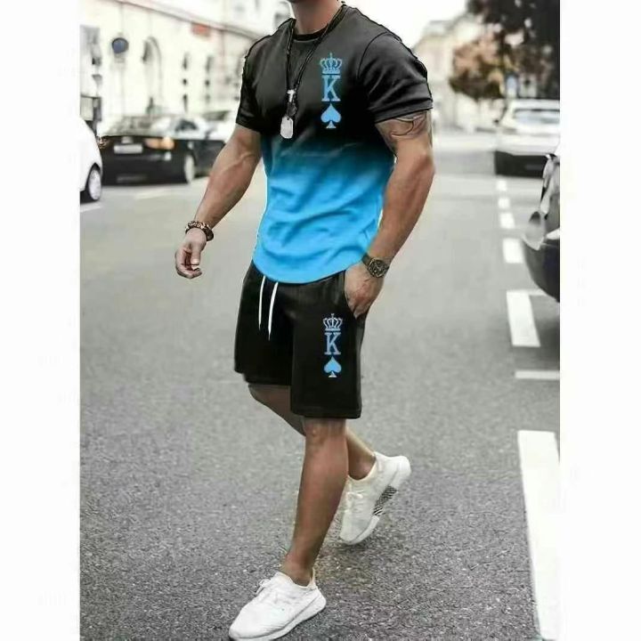 跨境2025爆款男装T恤短袖套装休闲时尚男士运动装(小...