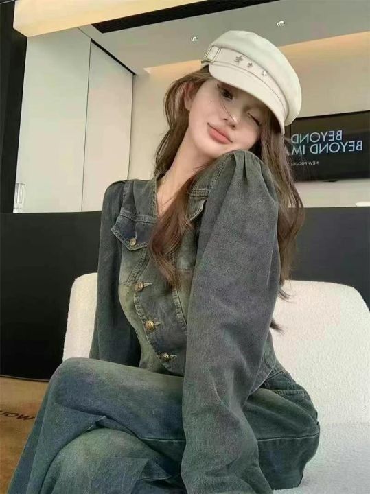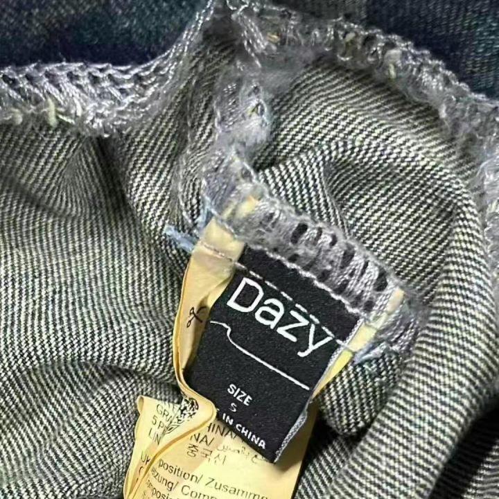 新款 Dazy品牌复古V领设计时尚辣妹修身短款牛仔外套,...