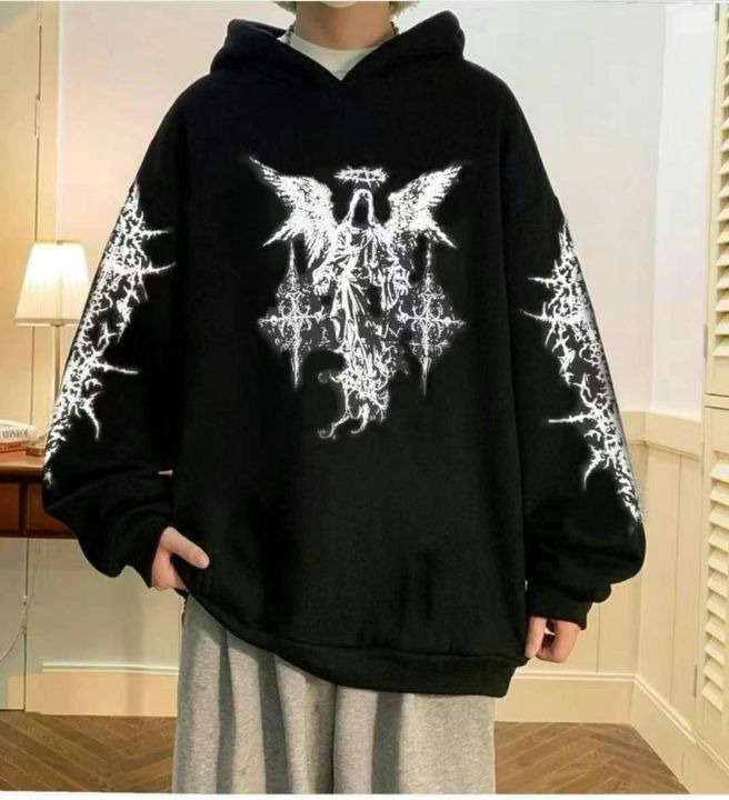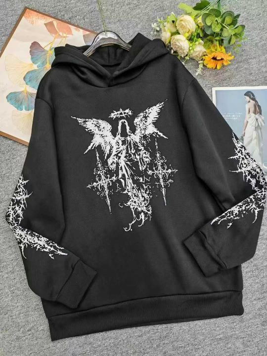 秋冬加绒男女同款宽松落肩连帽印花卫衣,独立包装,码...