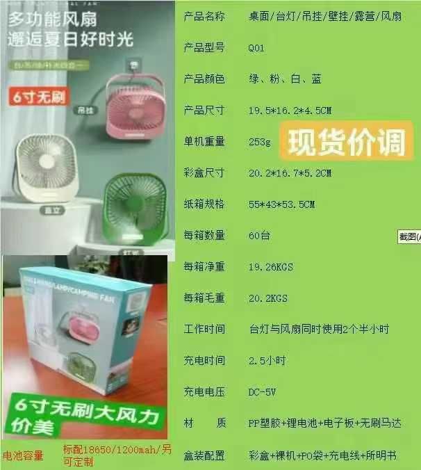 带灯小风扇,无刷电机,1200毫安电池。现货处理。