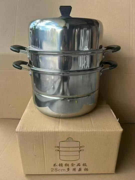 28公分,带磁加厚复底三层蒸锅,抛光精美,单套净重约4.5斤,淘宝盒包装,...