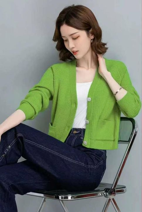 春季新款V领宽松慵懒风针织毛衣开衫,独立包装,均码...