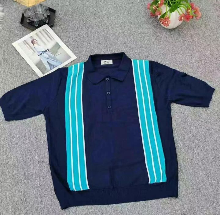 151件复古条纹拼色针织Polo衫,独立包装,码数S-XL。