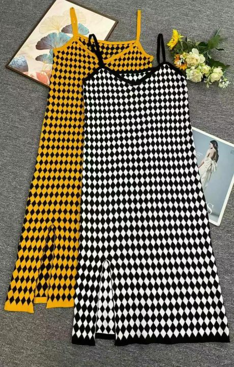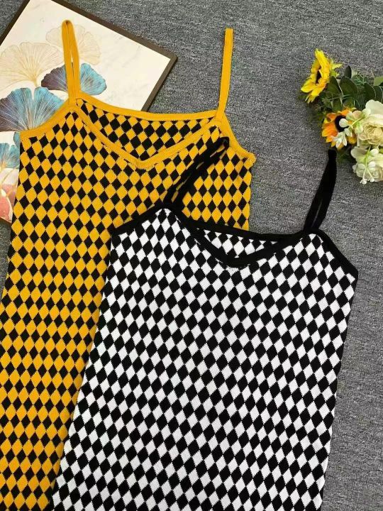 春秋新款高级感菱格纹开叉吊带针织包芯纱连衣裙,独立包装,均码面料软糯弹力大,80件左右,全清8.9元超低价秒杀!