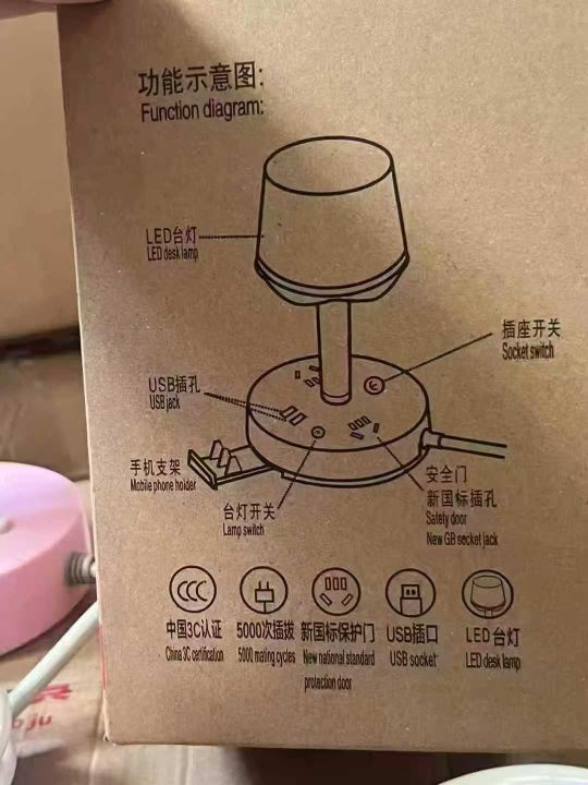 多功能台灯带插排。打开有几个颜色。独立包装。有2500个。几块钱