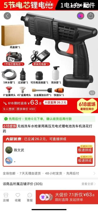 无线洗车水枪,家用高压充电式锂电池洗车机,浇花打药...