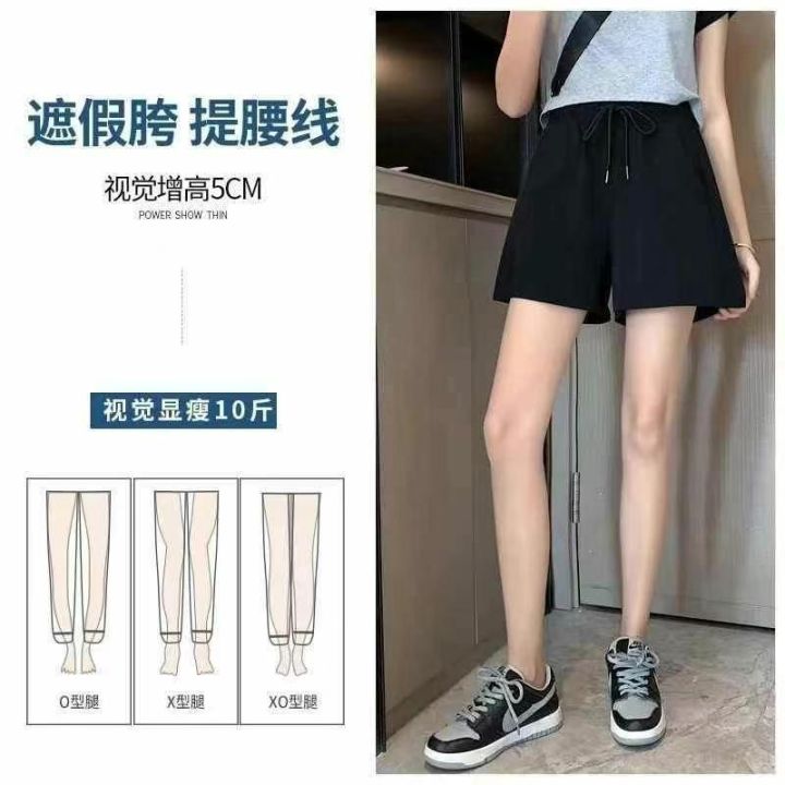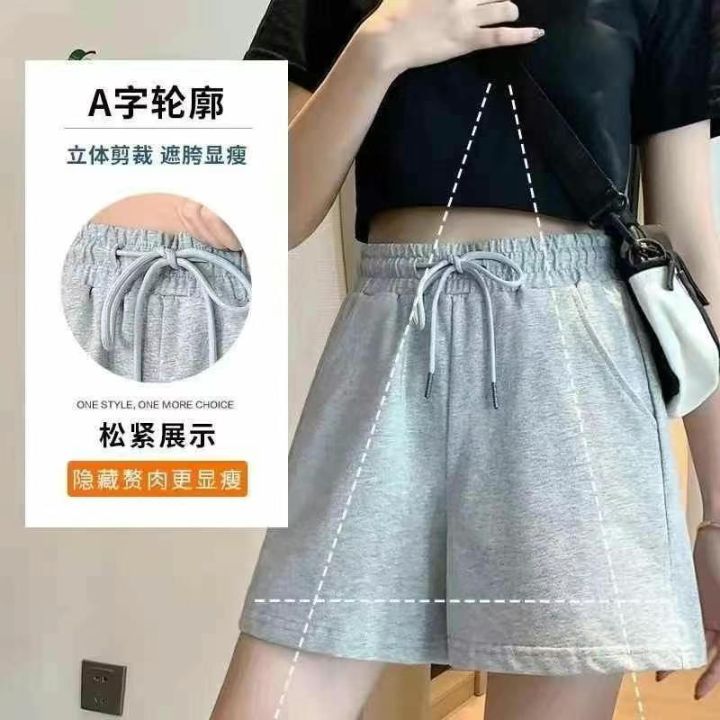 运动棉质短裤女夏薄款高腰a字窄版阔腿裤子休闲小个子...