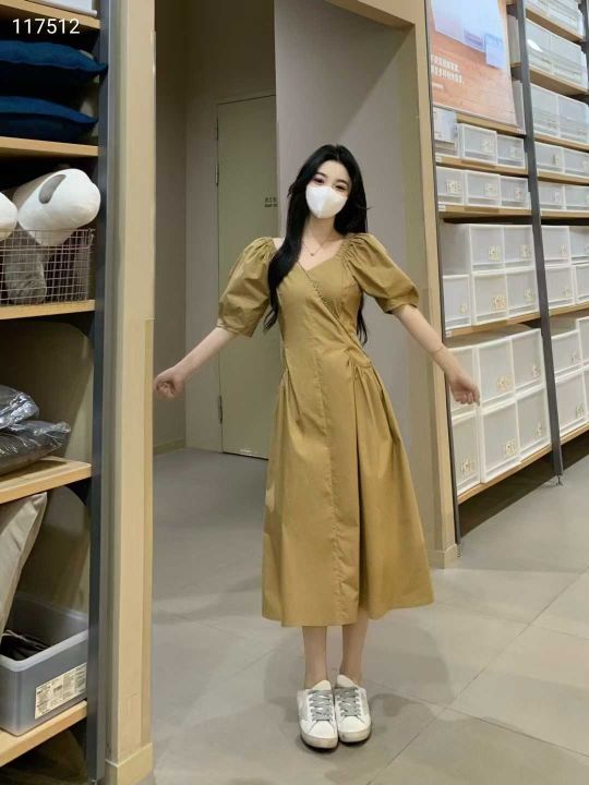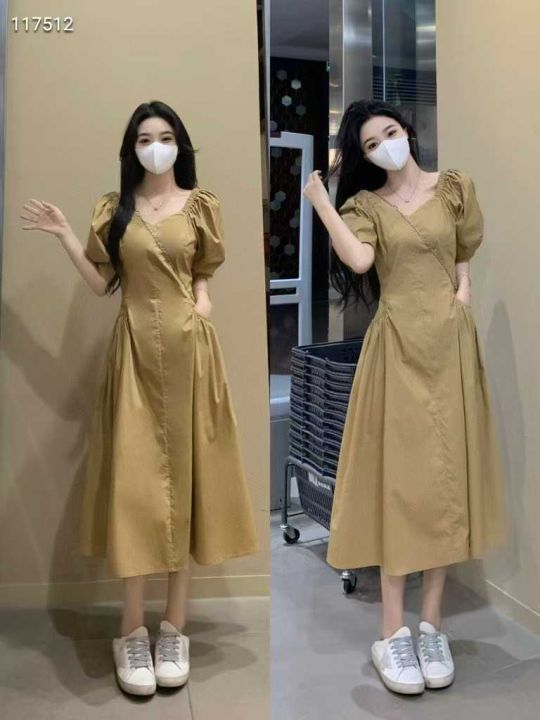 260件,大码法式气质泡泡袖裙子小个子夏季胖mm遮肉收腰显瘦设计感连衣裙,M到4XL