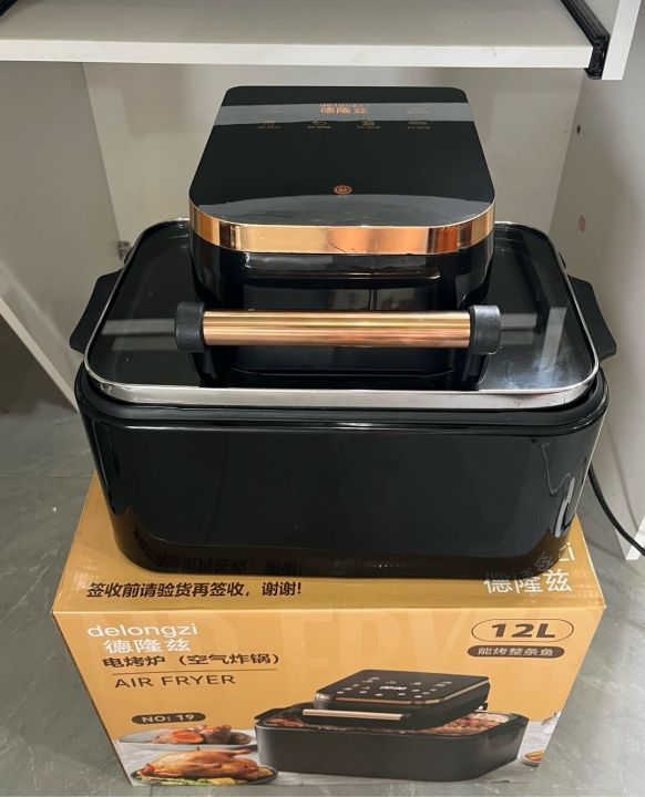12L空气炸锅,大容量可视款,能烤整条鱼,智能触屏操作,带不粘锅烤盘...