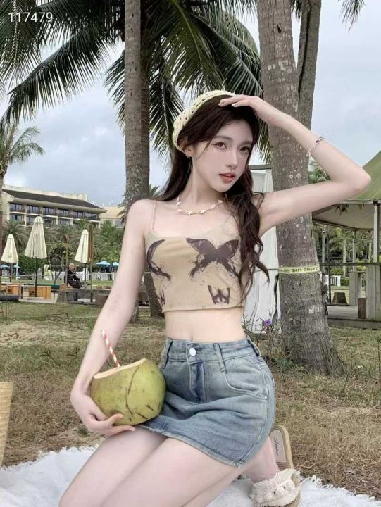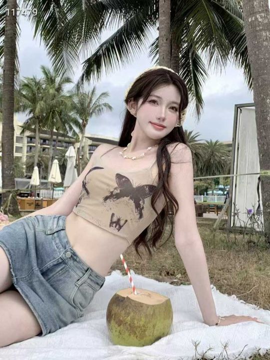 426件,辣妹爵士舞上衣蝴蝶复古扎染设计感水墨印花显...