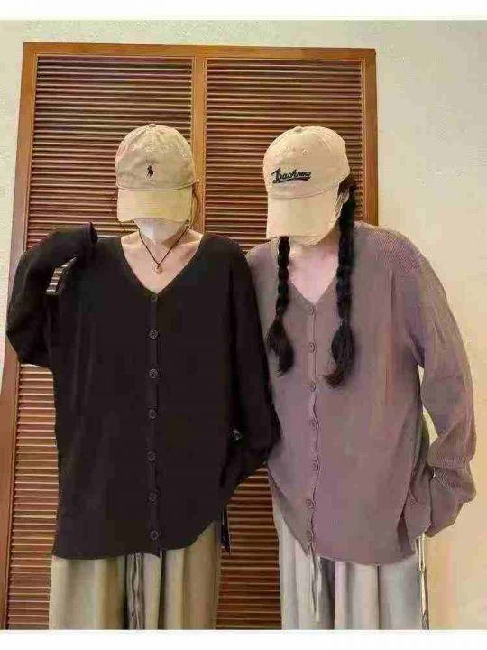全清价6.5韩版宽松大版慵懒风休闲V领开衫外套,独立包装,大货黑色为主,码...
