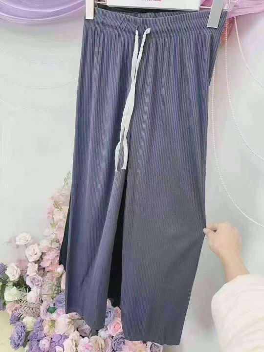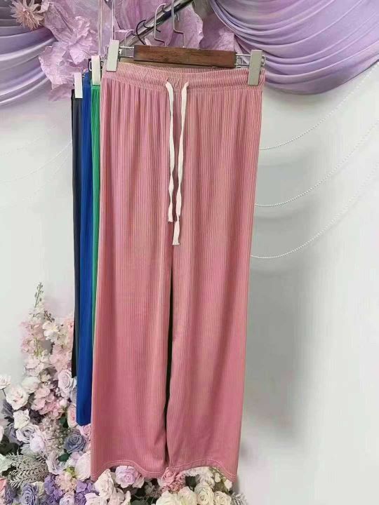下身长裤[太阳]全清价7.33800件。均码。 夏季女款冰丝阔腿裤,糖果色,垂感好,松紧腰带抽绳,有弹力,独立包装,腰部有弹力松紧不挑人,这个性价比直接拉满✅100件起多色混配8.3