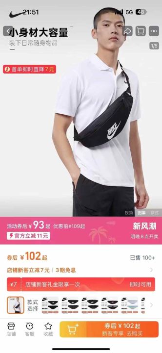 NIKE耐克男包女包运动休闲挎包训练便携腰包DB0490-010 DJ9681 橙色 黑色 粉色 白色 黑色 1200个 配清 100个起
