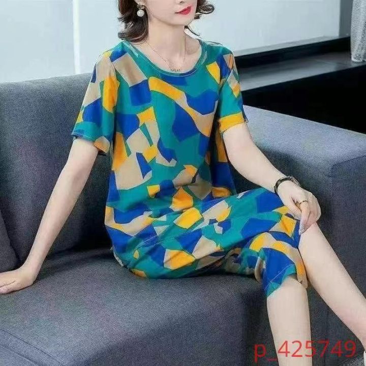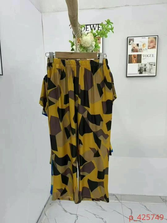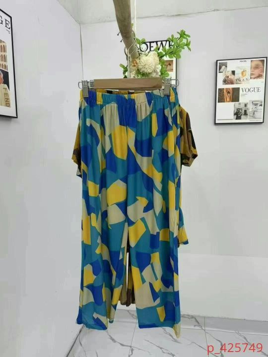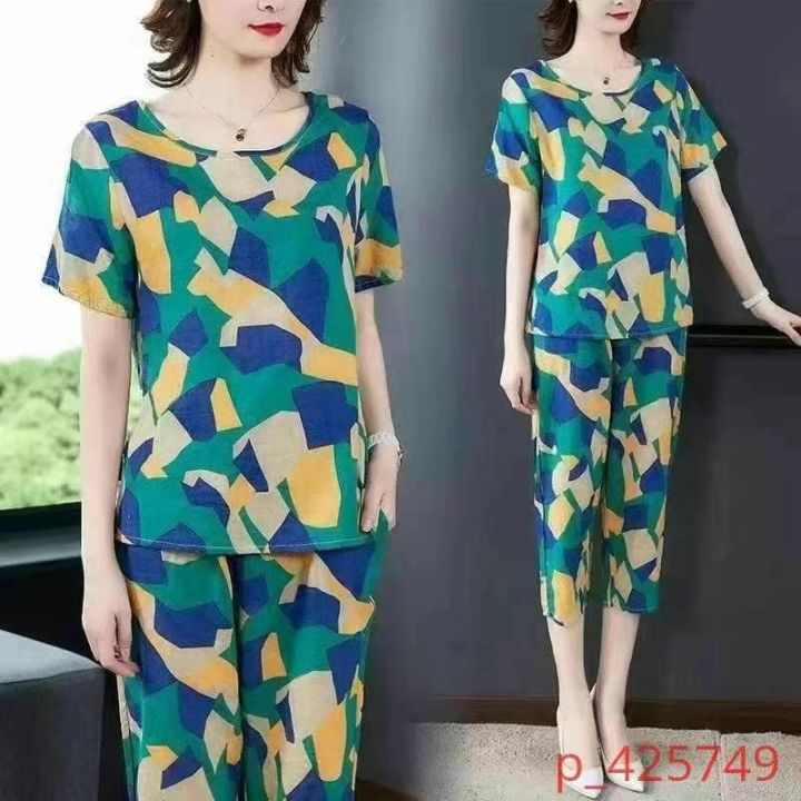277套棉绸短袖套装女夏新款宽松显瘦七分阔腿裤两件套,码数M-3XL,独立包装,货品干净! Cotton short sleeve set طقم قطن بأكمام قصيرة