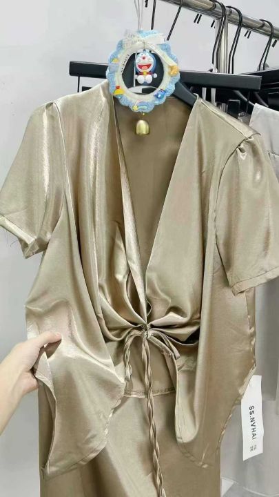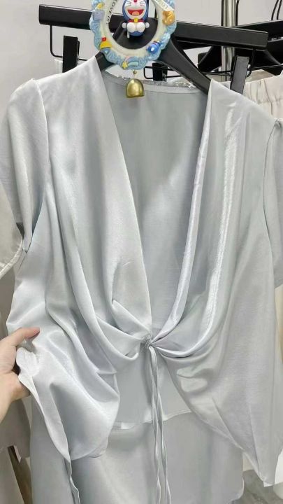 缎面材质高大上!一套出街超好看!面料贼拉有质感!卖到300➕400➕韩系风格大部分配备丝巾!极简剪裁,慵懒随性。透气亲肤,治愈夏日。一套上身,文艺感拉满~