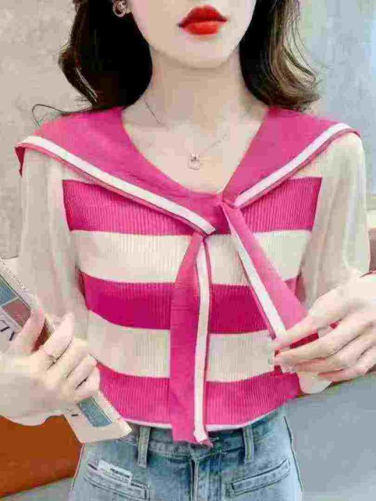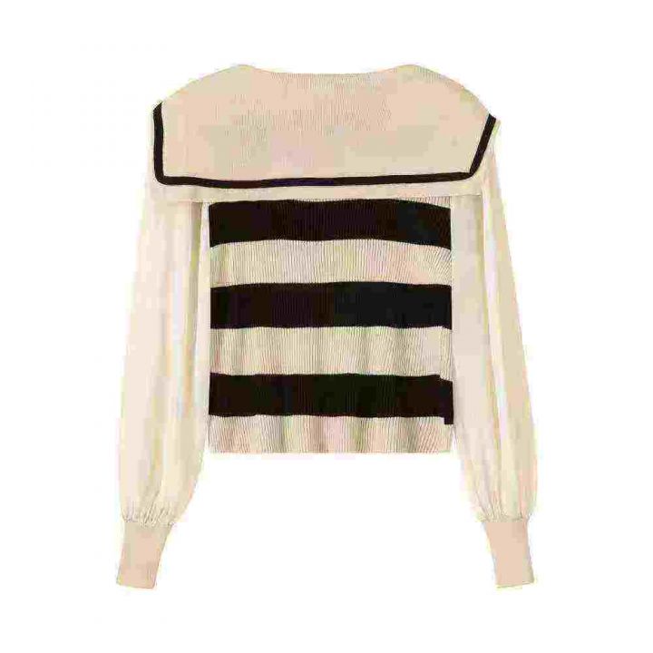 6.9元腾仓库亏本清货海军领系带披肩款拼接雪纺袖针织衫,数量1300件左右,...