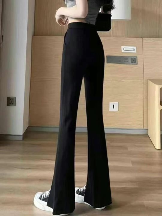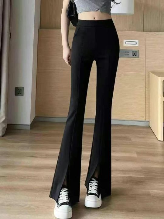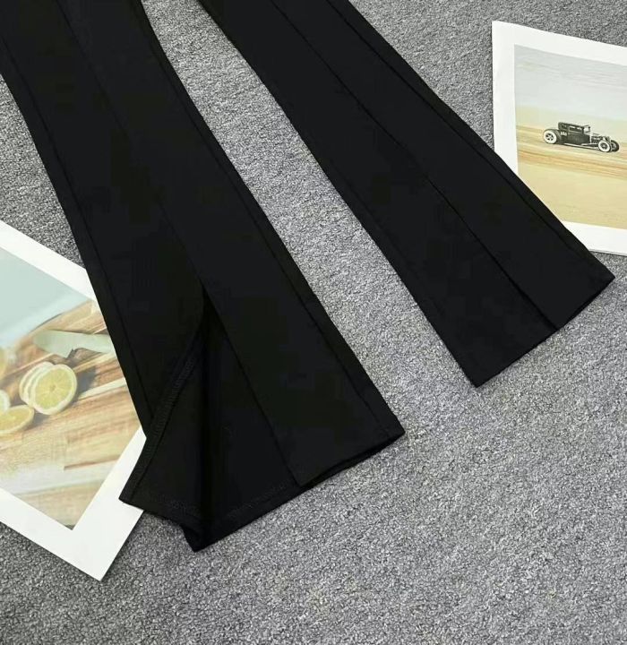 ☕️高弹力罗马棉微喇叭裤新款爆款高腰显瘦前开叉休闲...
