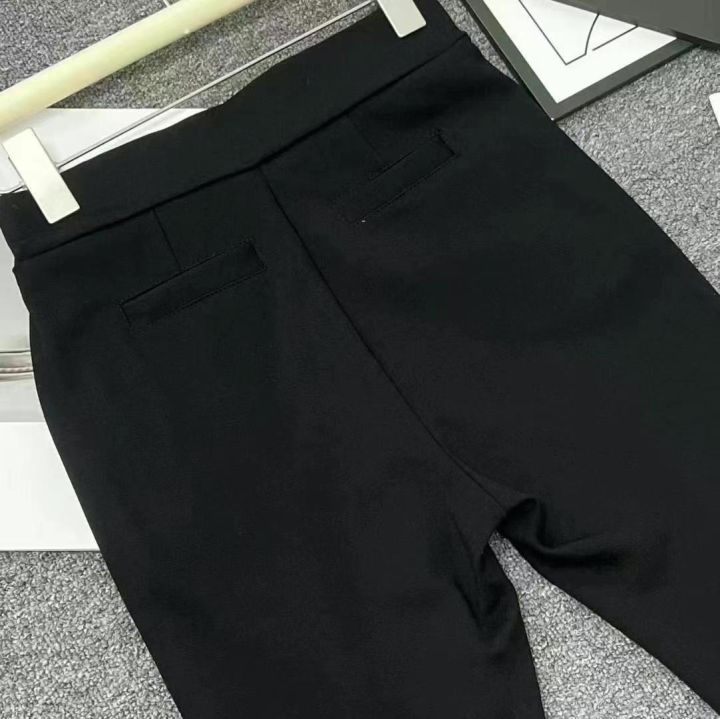 ☕️高弹力罗马棉微喇叭裤新款爆款高腰显瘦前开叉休闲西装裤子320条全清12.8元分货13.8元,码数S M L,独立包装,单款黑色,长度100cm