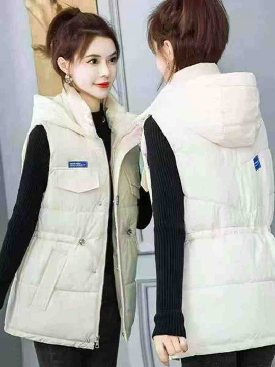 秋冬新款连帽保暖羽绒棉马甲外套女韩版收腰显瘦,(帽子可拆卸)独立包装带...