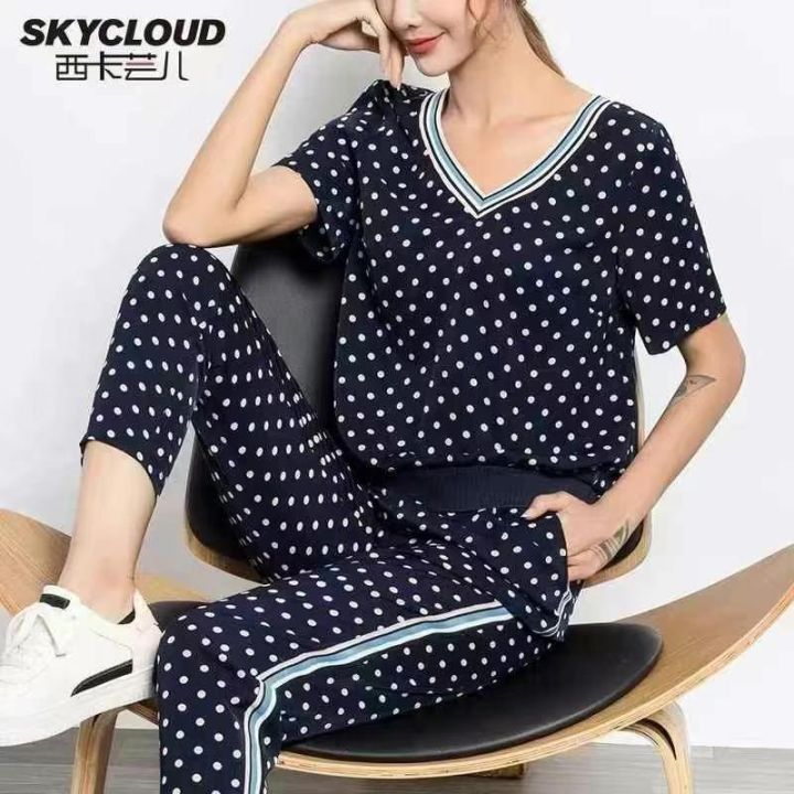 150套左右高品质大码蓝色波点雪纺套装!尺码M-3XL,独立包装!全清16.8 不分货