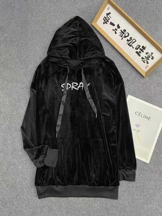 金丝绒连帽卫衣116件9.5,面料柔软舒适,图案字母刺绣...
