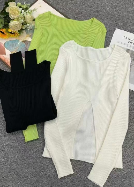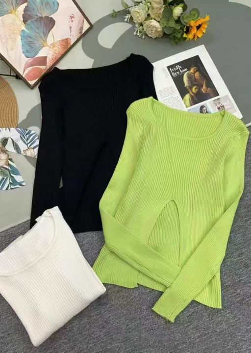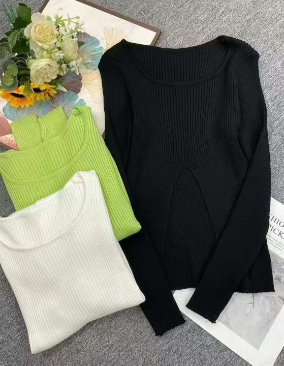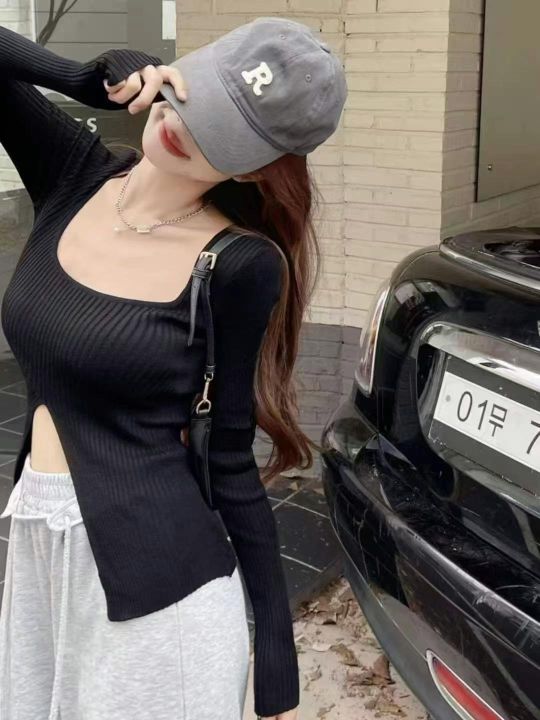 春夏新款辣妹设计感洋气前开叉方领冰丝曲珠针织衫,独...