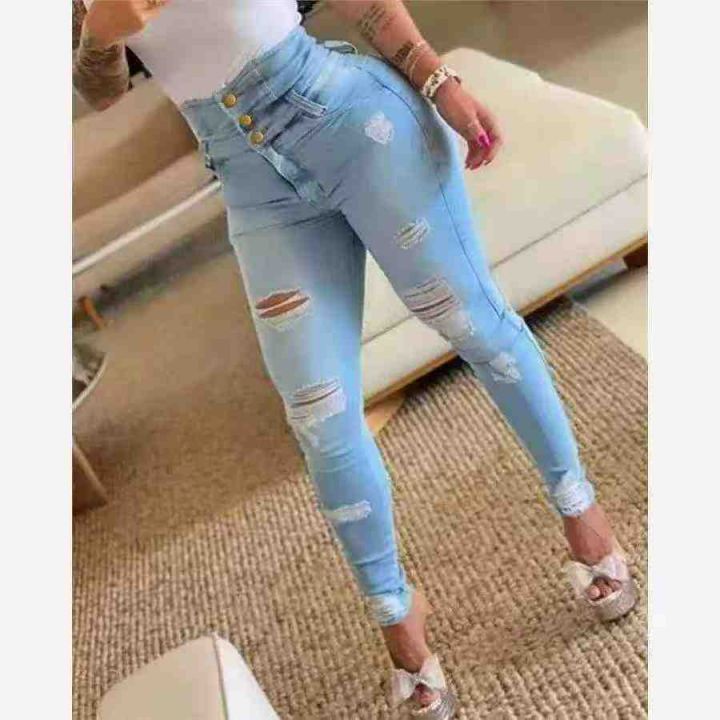 秋季新品外贸原单高弹力洗水棉破洞牛仔小脚裤,独立包装,码数S--XL码,480...