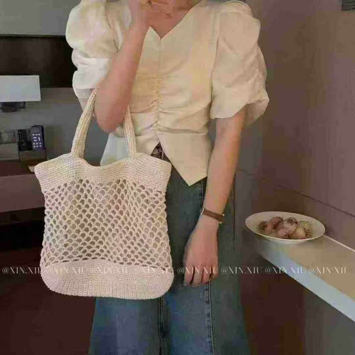 上新全清:10.8一件韩系V领设计感泡泡袖百搭上衣,[爱心]55件左右,杏色,...