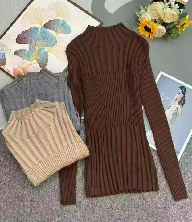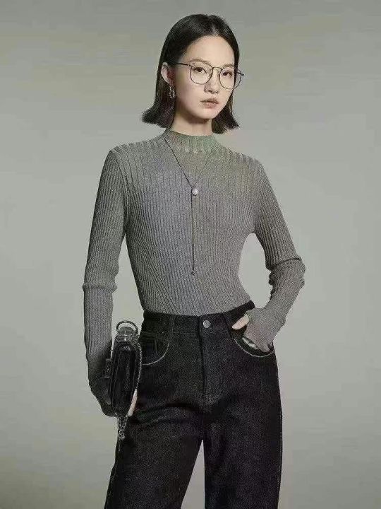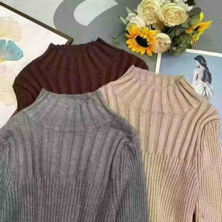 秋冬新款包芯纱洋气半高领弹力修身针织套头毛衣,独立...
