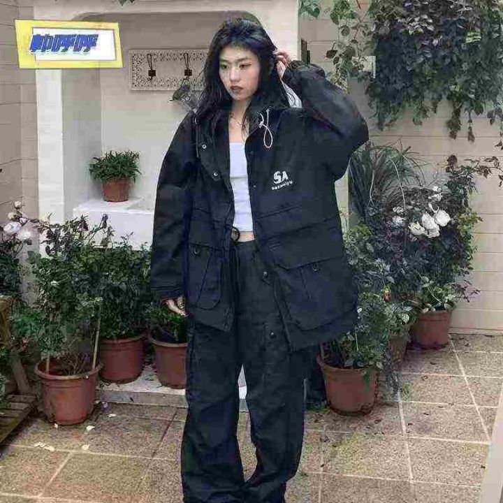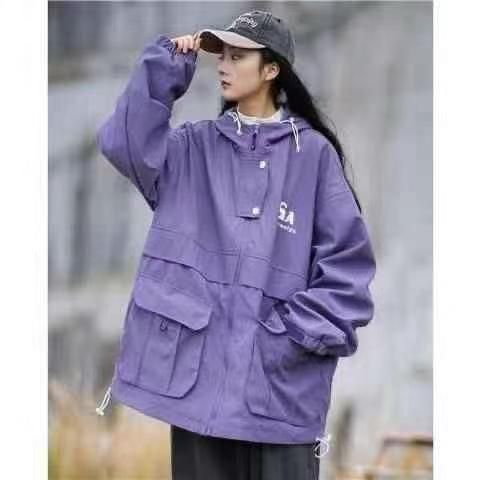 美式字母刺绣新款潮牌山系防风冲锋衣,男女款宽松连帽工装外套,单款两个色1-4码独立包装120件全清21.8分货加一