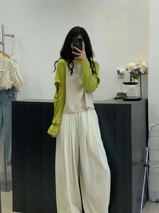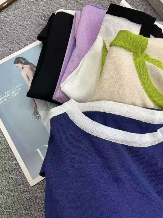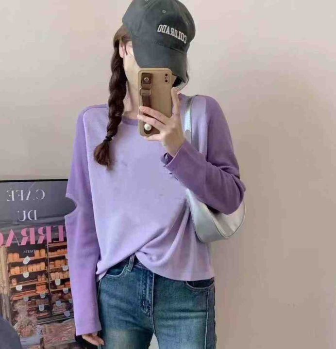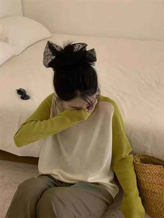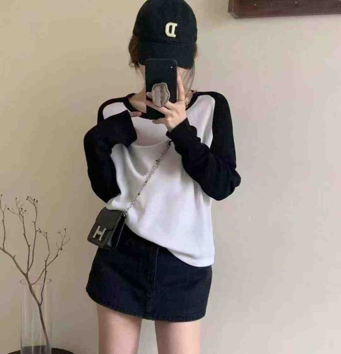 早秋新款复古美式小众破洞设计款宽松撞色百搭针织套头...