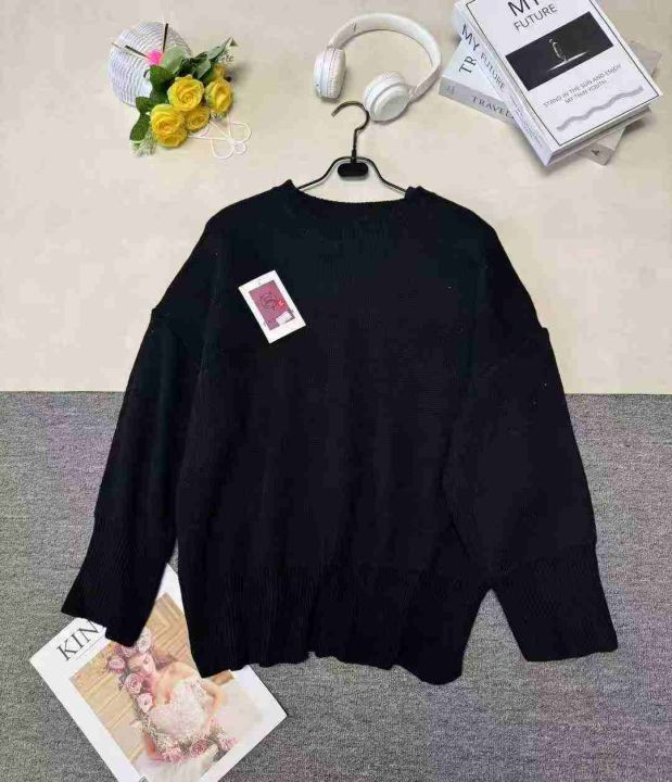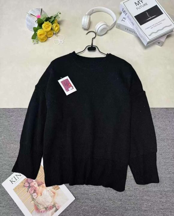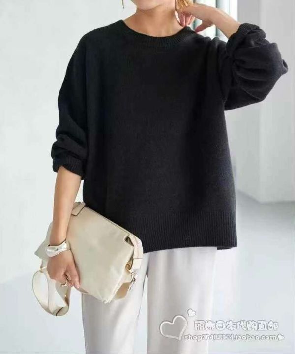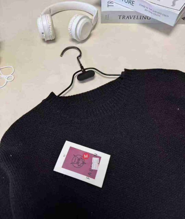 圆领黑色针织衫宽松套头毛衣 ,单款单色,下摆开衩设计,品质好,独立包装带吊牌,均码,210件,清7.9,分➕1