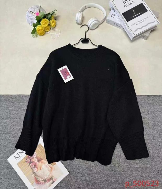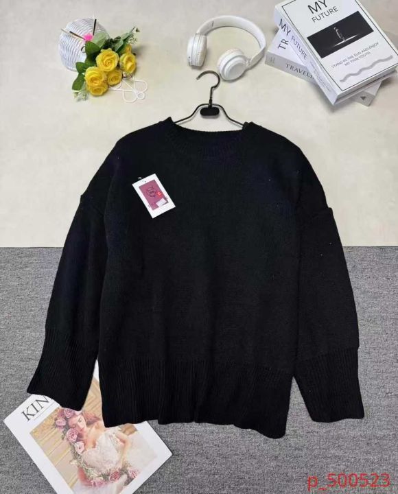 圆领黑色针织衫宽松套头毛衣 ,单款单色,下摆开衩设计,品质好,独立包装带吊牌,均码,210件,清7.9,分➕1 Round neck black knit sweater loose pullover sweater سترة سوداء مبطنة بحلق مستدير فضفاضة_@_@