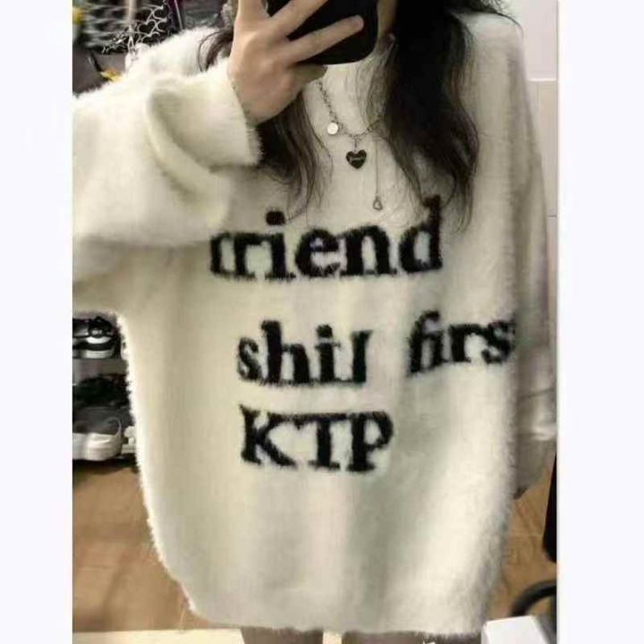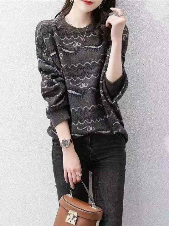 秋冬新款宽松百搭提花设计感小众慵懒风宽松加厚圆领毛衣,独立包装,均码面...