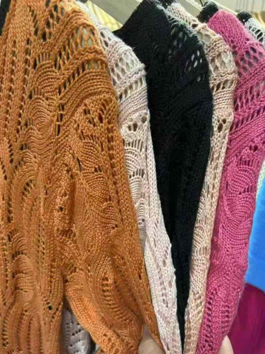 女士镂空中袖边蕾丝针织衫。数量200多件,独立包装,均码,大众人群可穿,全清4.5