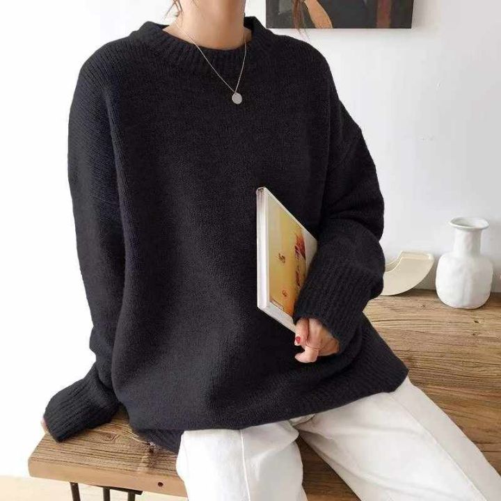 圆领黑色针织衫宽松套头毛衣 ,单款单色,下摆开衩设计,品质好,独立包装带吊牌,均码,210件,清7.9,分➕1