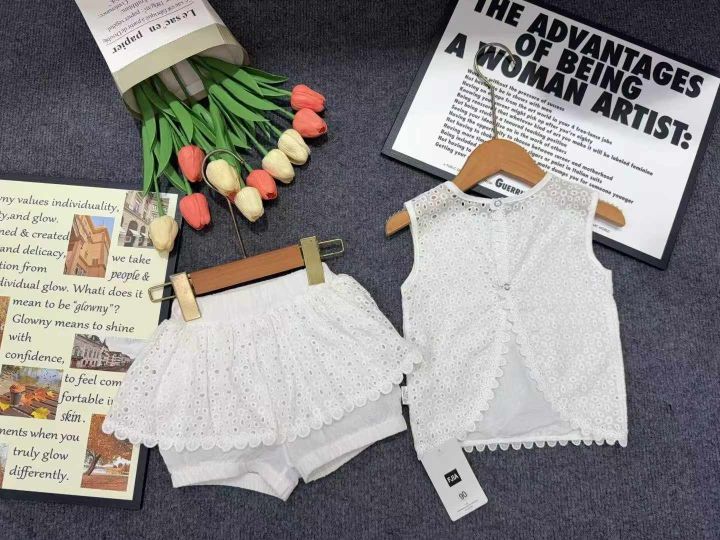 天猫店下架纯棉时尚刺绣蕾丝童装套装 400套左右 码数80-150 款式新 刺绣蕾丝后背露空 货品干净 全部独立包装带吊牌 全清5.8 分货➕1