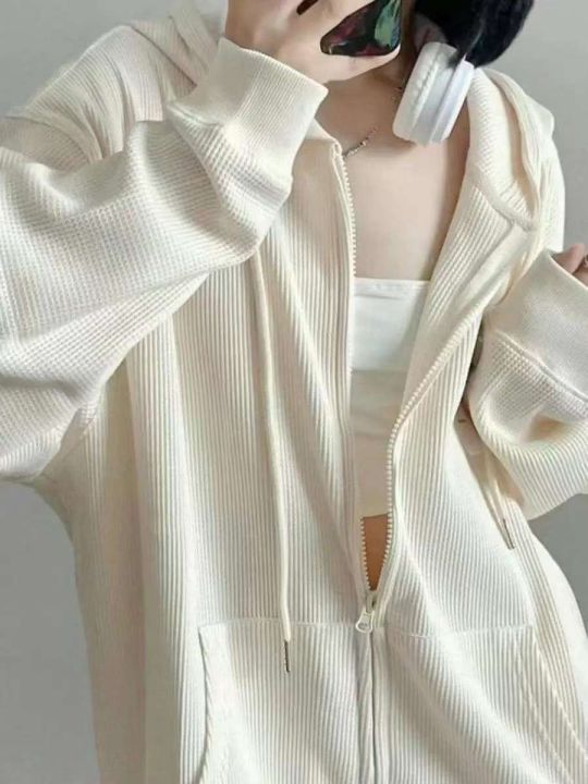 春秋季2025年新款韩版宽松,男女款灯芯绒拉链连帽开衫...