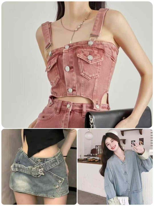 天猫仓回收70件高品质牛仔上衣套装背带裤,码数S-2XL。质量版型都是很新的款,捡漏清,都有独立包装。