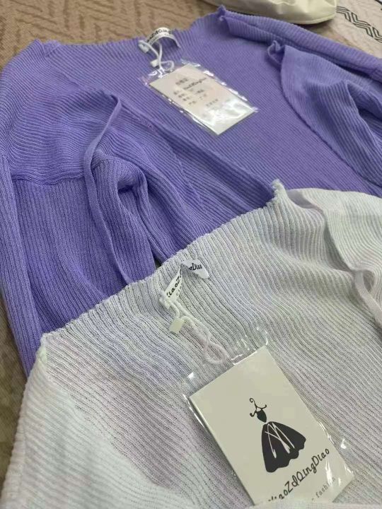 150件左右2025新货靓妹款披肩外搭针织防晒衣薄纱外套上衣,高弹力,均码!几乎都是白色!紫色只有几件!独立包装!全清4.8 不分货