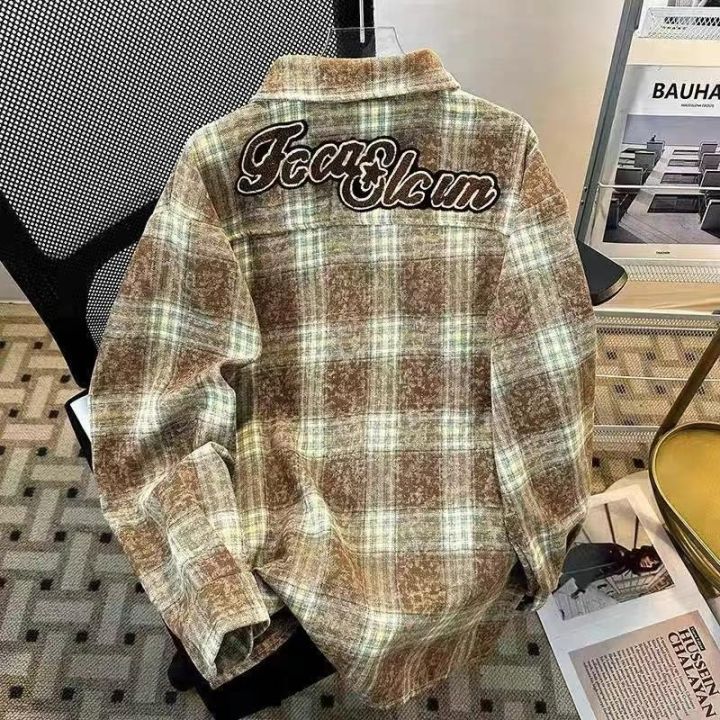 美式vibe刺绣格子夹克男女同款春秋季宽松外套潮牌复古痞帅情侣衣服,221件,M-2XL码,型号:0618#30,分货➕1