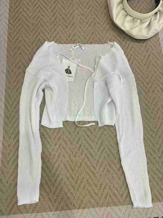 150件左右2025新货靓妹款披肩外搭针织防晒衣薄纱外套上衣,高弹力,均码!几乎都是白色!紫色只有几件!独立包装!全清4.8 不分货