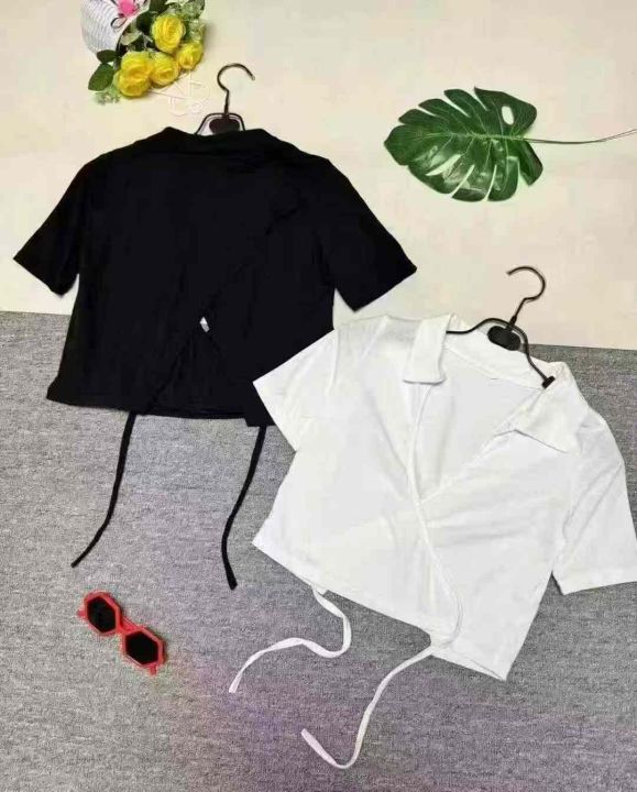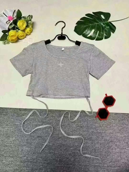 辣妹美式绑带设计感短袖t恤两个款,有独立包装220件左...