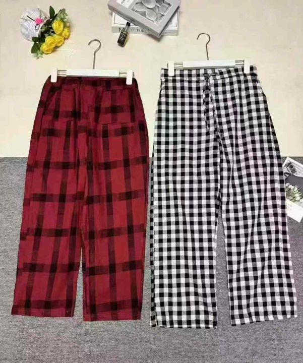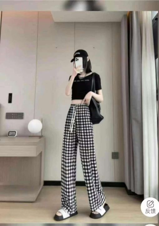夏季高腰复古时尚格子直筒拖地裤独立包装,S-2XL100件...