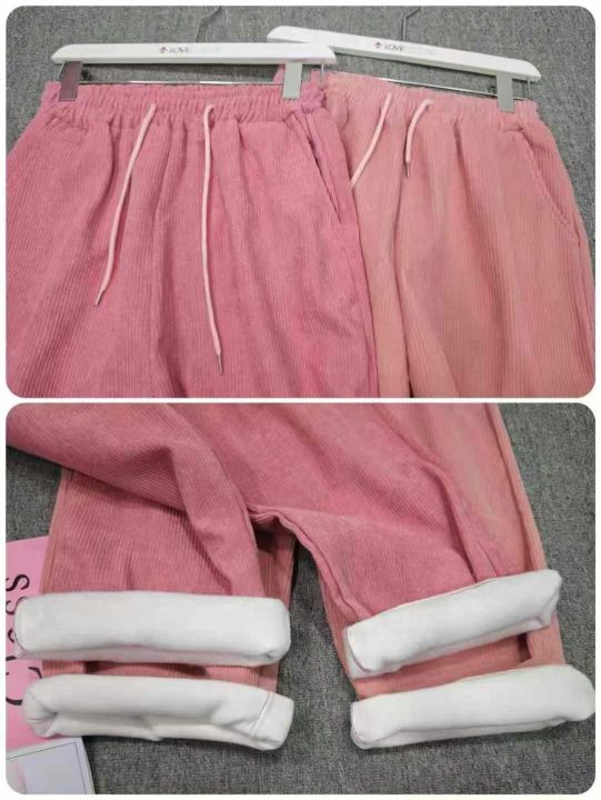 电商仓回收528条粉色灯芯绒女裤加绒休闲阔腿裤,码数s-3xl。加绒加厚,保暖舒适。质量和版型都很好,有松紧腰口袋。全部独立包装。
