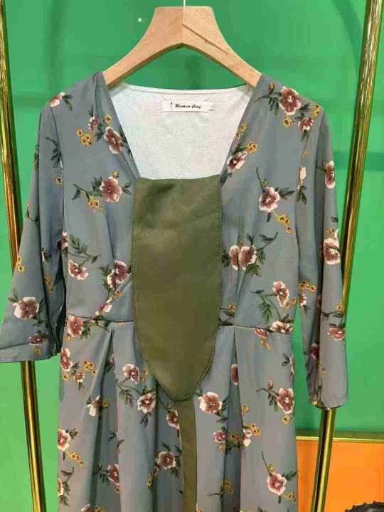 100件左右2025夏季娃娃egg裙法式过膝智熏裙法式桔梗印花雪纺裙,有腰带!尺码S-L,独立包装!全清13.8
