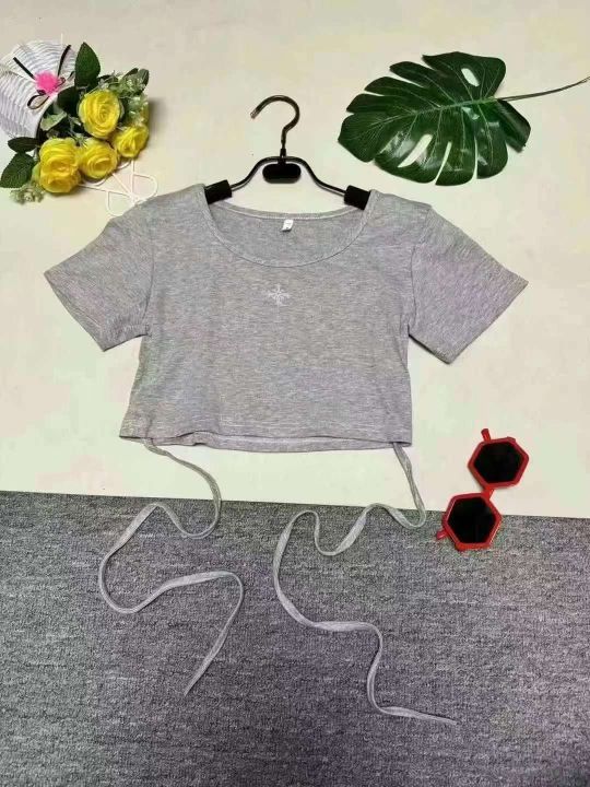 辣妹美式绑带设计感短袖t恤两个款,有独立包装220件左...